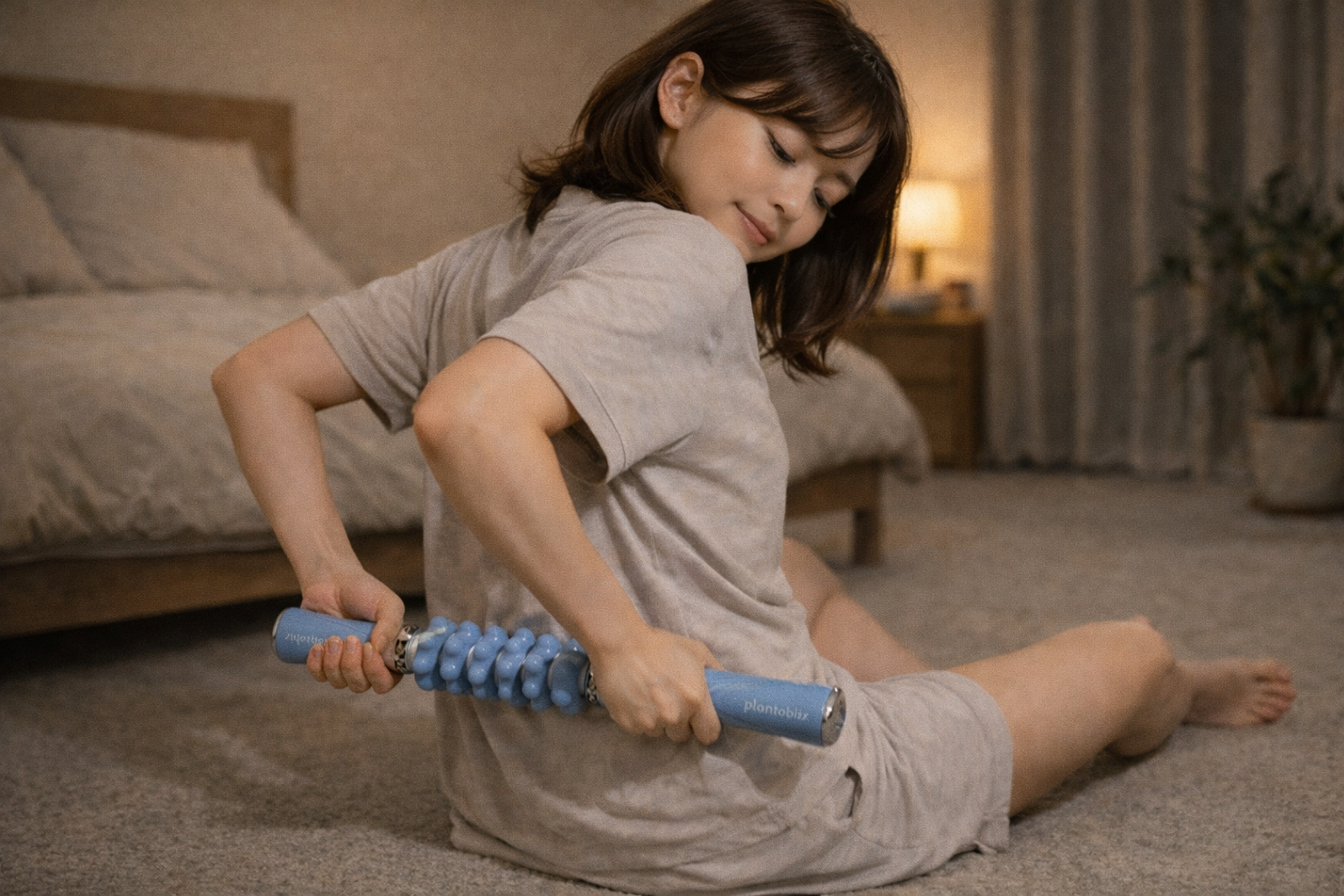 A. 強い刺激は必要ありません。このローラーは、体重を「預ける」だけで使える設計です。寝る前は、気持ちいいと感じる強さで十分。ゆっくり呼吸しながら使うことで、体が落ち着きやすくなります。