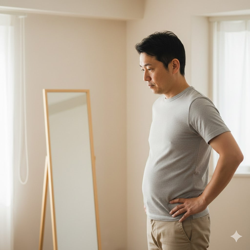 腹だけが、 気がついたら大きく前に出てしまう。